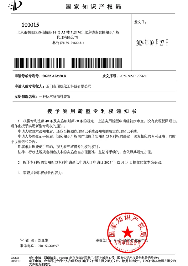 Наша компания специализируется на производстве продукции верхнего и нижнего уровня для удлинителей цепей полиуретана, промежуточных продуктов для производства пестицидов и химического оборудования. К ним относятся удлинители цепей полиуретана, такие как Ethancure 300/DMTDA, Ethancure 100/DETDA, диметилдисульфид и метилмеркаптан натрия. Промежуточные продукты для производства пестицидов включают оксим метилтиоацетальдегида и 2-метил-4-трифторметил-5-тиазолкарбоновую кислоту. Химическое оборудование включает реакторы, конденсаторы, резервуары для хранения и некоторые огнеупорные формы, такие как формы из вольфрама-хром-молибдена. Наша компания, основанная в июне 2023 года, имеет производственные линии, расположенные в городе Юймэнь провинции Ганьсу на северо-западе Китая и городе Цзыбо провинции Шаньдун на восточном побережье, что обеспечивает уникальные преимущества как при морской, так и при наземной транспортировке. Наш производственный объект в Ганьсу, занимающий около 40 000 квадратных метров, является ключевым предприятием в городе Юймэнь. Компания получила патент на изобретение «Система переработки катализатора на основе иодида меди для получения диметилтиотолуолдиамина» и семь патентов на полезные модели, включая «Механизм адсорбции футеровки трубопровода для удаления пыли» и «Реактор с системой мониторинга».